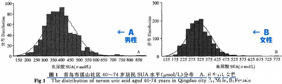 图中420指男性血尿酸指数,360指女性血尿酸指数,单位μmol/L