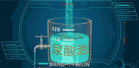 “尿酸池”就像小学应用题中的游泳池,永远在一边注水、一边放水,人均总量约为1200mg,每天“注入”尿酸约750~800mg,“排出”约500~1000mg,在正常状态下保持尿酸产生、排泄的动态平衡。