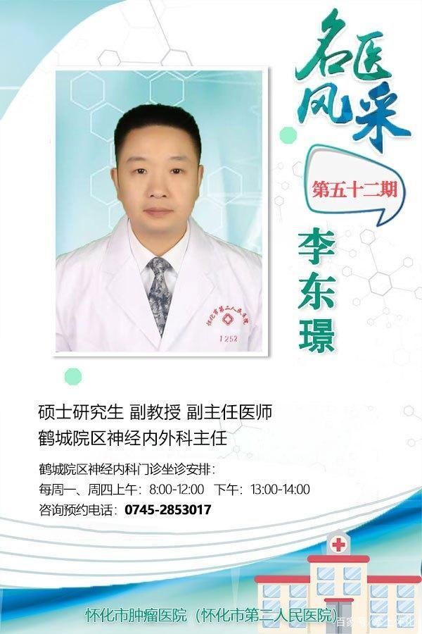 摘要:李东璟: 硕士研究生,副教授,副主任医师,鹤城院区神经内外科主任。怀化市神经内科质量控制中心副主任委员、怀化市医学会神经内科分会副主任委员;曾在湖南省人民医院等医院